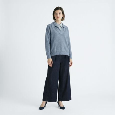 [型番:72263250311]リラクシーな着こなしに適役なワイドシルエットのデニムパンツ。フロントに入ったステッチが、ボディラインをすっきり見せるポイントに。どんなトップスにも合わせやすく、スタイリングの幅が広がります。※商品画像はサンプルを使用しているため、実際の商品と色味などの仕様が異なる場合がございます。予めご了承ください。ネイビーmodel:T.167着用サイズ:38ライトブルーmodel:T.165着用サイズ:38