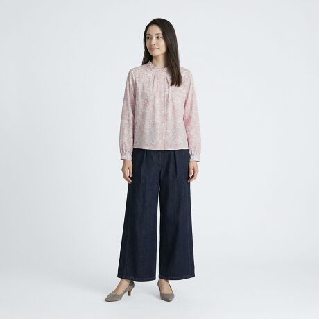 リーフフラワースタンドカラーブラウス