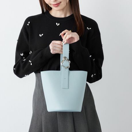 ニュアンス感のあるバックルと、コンパクトなサイズ感が可愛らしいバケットバッグ。