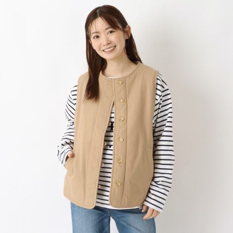 両面ともポケット付きで機能性も◎。厚すぎず軽量なので、レイヤードスタイルにも取り入れやすくカジュアルな装いにもぴったりです。