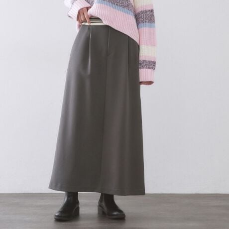 ・自然と裾にかけて広がるナローシルエットとロング丈のデザイン。