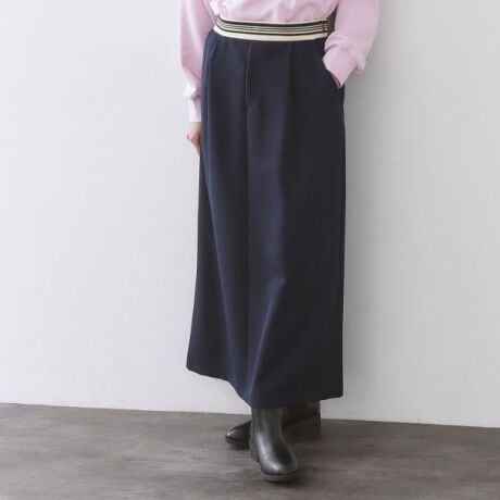 ボーダー柄のウエストリブ使いをポイントにしたナロースカート
