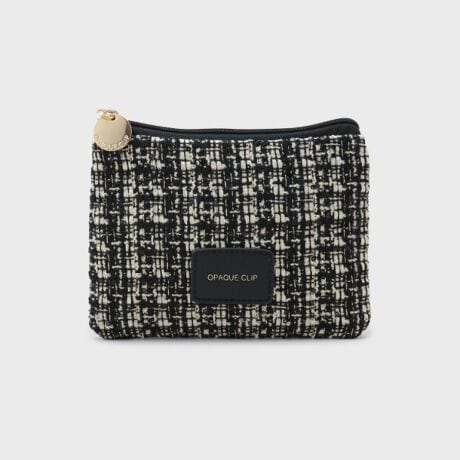 トレンドのツイード素材を使用したコンパクトなポーチ。