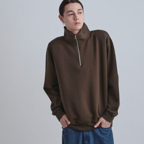 スポーティーなハーフジップデザインを、クリーンな素材感で上品に仕上げたスウェット。