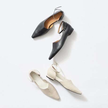 タイトスカートやワンピースといったフェミニンなスタイルにはもちろん、ワイドパンツやデニムに合わせて、足元に繊細な抜け感をプラスするのもおすすめです。