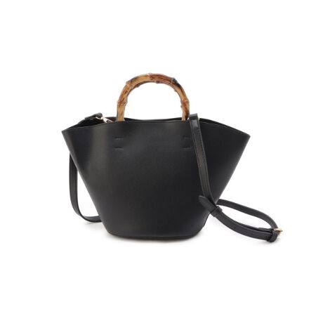 バンブーをリアルに再現したハンドルを使用した2way仕様の扇型のショルダーバッグ。