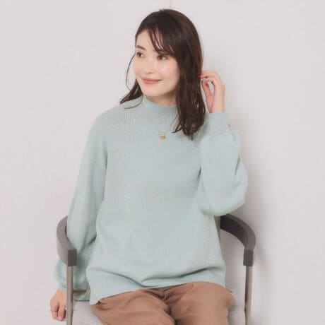 総針編みで適度な肉感があり、首元までホールドしてくれるハイネックデザインなので今時期から着られて春先までお使いいただけます。