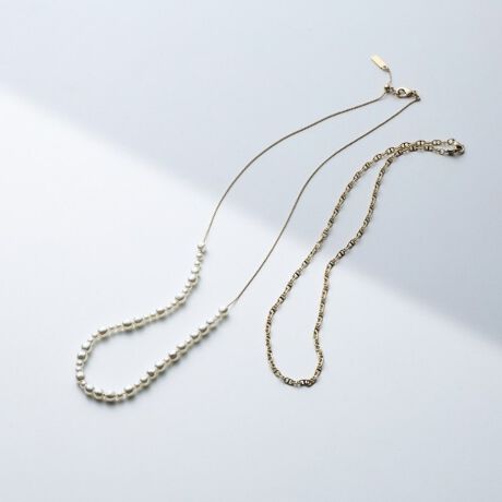 繊細な輝きを放つチェーンとエレガントなパール調を組み合わせた2連セットのネックレス。