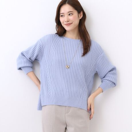 すっきりとしたワイドリブの変形柄のニットプルオーバー。
