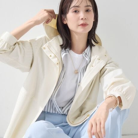 着丈を少し長めに設定しているのでヒップ周りもカバー出来、ウエストがドロスト仕様なのでトレンドのペプラム感ある女性らしいシルエットに変えて着用いただけます。