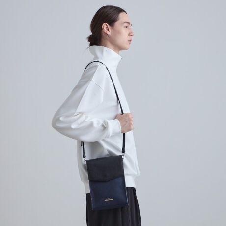 シャープで洗練された印象の、縦型ミニショルダーバッグ。