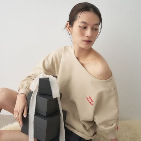 ・首元を美しく見せる広めのボートネックは、肩を落としてワンショルダーとしても楽しめる2WAY仕様。デコルテラインを綺麗に見せ、ヘルシーな抜け感を演出します。