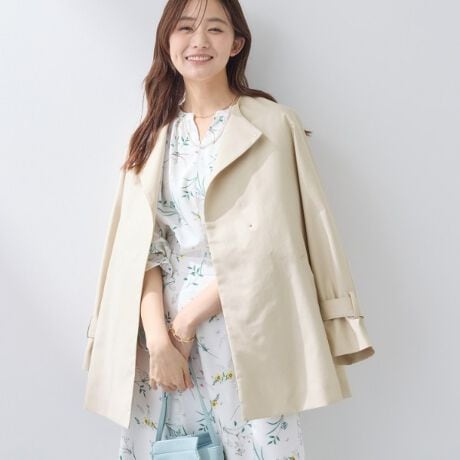 シンプルなノーカラーながら、袖ぐりのトレンチデザインを効かせたクラシカルな印象も持っています。