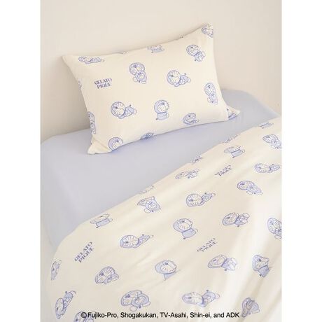 ハッピーなにこにこ顔やプンプン怒った顔、涙がこぼれそうなうるうる顔まで。ドラえもんとドラミの豊かな表情を描いたオリジナルアートが、喜怒哀楽いっぱいの毎日に寄り添う『ドラえもん』シリーズ第2弾。様々な表情のドラえもん、ドラミを総柄プリントしたシングルサイズの寝具3点セットです。掛けカバーとピローケースは総柄プリント、BOXシーツは無地デザインで仕上げました。なめらかなコットンレーヨン素材で、季節を問わずお楽しみいただける素材感。ドラえもん・ドラミの喜怒哀楽の表情を全て使用した、特別デザインの巾着付きでお届けします。色はドラえもん柄のブルーと、ドラミ柄のピンクの2色をご用意。同シリーズのマルチカバーやクッションとコーディネートしてお楽しみください。