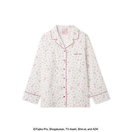 ハッピーなにこにこ顔やプンプン怒った顔、涙がこぼれそうなうるうる顔まで。ドラえもんとドラミの豊かな表情を描いたオリジナルアートが、喜怒哀楽いっぱいの毎日に寄り添う『ドラえもん』シリーズ第2弾。色んな表情のドラえもん&ドラミを、gelato piqueらしい柄に落とし込んだ布帛シャツです。キャラクターごとにディテールを変えているのがポイントで、ドラえもんはストライプ柄にキャッチーな波テープをあしらったデザインに。ドラミは小花柄をベースにピコレースを付け、フェミニンに仕上げました。胸ポケットのロゴ刺繍や、色を効かせたピスネームもさりげないポイントです。色はドラえもん柄のブルーと、ドラミ柄のレッドの2色をご用意。お揃いのロングパンツや同シリーズのカーディガンと合わせたり、メンズとのペア・コーディネートもお楽しみいただけます。