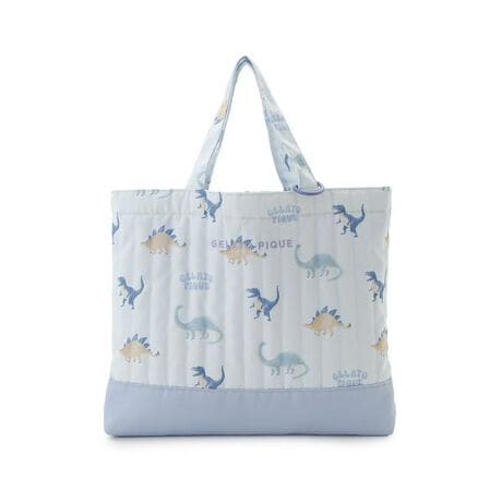 入園・入学式や新学年を迎えるKIDSのための、gelato piqueらしいキュートなバッグ&収納シリーズが装い新たに新登場。ストライプのキルト生地にカラフルな柄プリントを配した、裏地付きのレッスンバッグです。B4サイズまで入る余裕のサイズ感で、内側にはお名前が書けるネームタグを付属。底面は無地の生地で汚れが気になりにくい仕様です。撥水機能をプラスした生地を使用し、より使いやすさが向上しました。ワンポイントでブランドロゴの刺繍入り。色はいちご柄のオフホワイト、ベア柄のベージュ、リボン柄のピンク、ダイナソー柄のブルーの4色展開です。同シリーズのシューズバッグや巾着と組み合わせてお楽しみください。