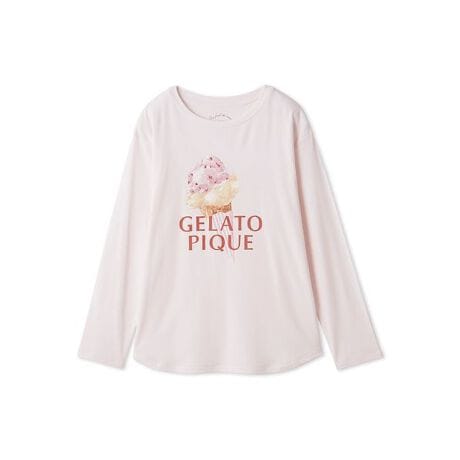 POPなスリーブ付きのコーンアイスをモチーフにした、カラフル&キュートなアイス柄のカットソーシリーズです。寒さが続くこの時期にうれしい、やや厚みのある柔らかいレーヨンを使用したロングTシャツ。フロントには大きなロゴとスリーブ付きのコーンアイスをプリントして、キャッチーな存在感に仕上げました。色はストロベリーフレーバーのピンクと、チョコミントフレーバーのミントの2色展開。同シリーズのロングパンツと合わせたり、同時期に展開するジェラート素材のランダムボーダーシリーズとコーディネートするのもおすすめです。