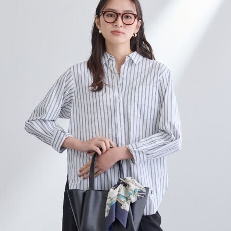 繊細なストライプにほんのりラメが煌めくシャツです。