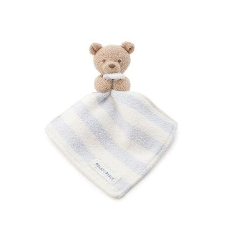 gelato piqueらしいパステルカラーのボーダー柄と、ぬいぐるみモチーフを組み合わせた春らしい‘エアリーモコ’素材のBABY小物シリーズです。爽やかな色合いのボーダー柄と、ふわふわのベアを組み合わせたBABYラトル。ボーダーの部分に触れるとかさかさとした音がして、赤ちゃんの関心を引き寄せます。お洗濯物をぎゅっと抱えているようなベアの表情が愛おしいアイテム。ブランドロゴ入りのモコテープも表にあしらいました。同のウォッシングアニマルシリーズのルームウェアとコーディネートしたり、同シリーズの雑貨を組み合わせてギフトにもおすすめです。