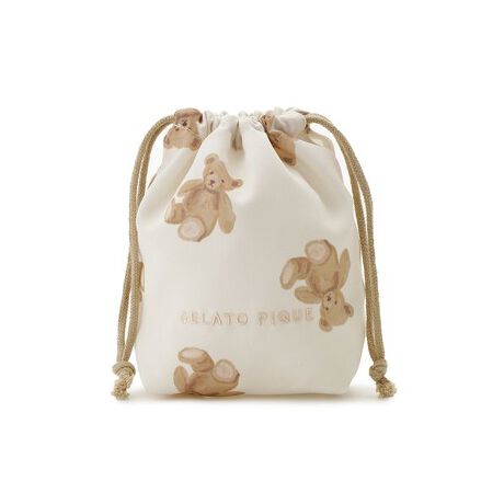 入園・入学式や新学年を迎えるKIDSのための、gelato piqueらしいキュートなバッグ&収納シリーズが装い新たに新登場。カラフルな生地に柄プリントを入れたSサイズの巾着は、コップやランチョンマット、歯ブラシなどを入れるのにちょうど良い大きさです。撥水機能をプラスした生地を使用し、より使いやすさが向上しました。ワンポイントでブランドロゴの刺繍入り。色はいちご柄のオフホワイト、ベア柄のベージュ、リボン柄のピンク、ダイナソー柄のブルーの4色展開です。同シリーズのバッグやサイズ違いの巾着と組み合わせてお楽しみいただけます。