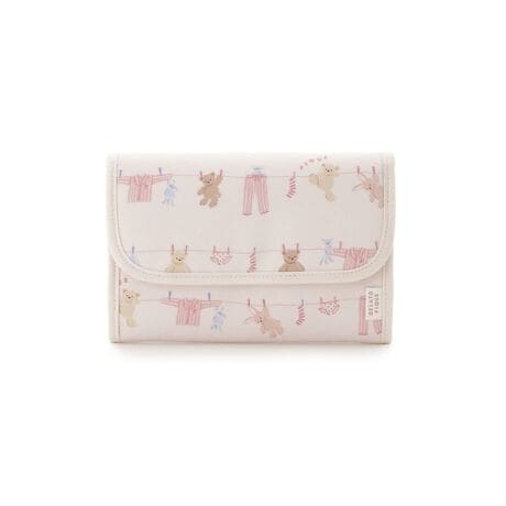 シャボンの香りが漂ってきそうな、春のピースフルなお洗濯タイム。洗濯紐に留まったルームウェアやぬいぐるみたちの絵柄を総柄プリントした、ウォッシングアニマル柄のママ雑貨シリーズです。小さめで使いやすいSサイズの母子手帳ケースは、中身がぱっと見えて整理しやすいジャバラ式の仕切りがポイント。カードスリットやファスナーポケットも付いており、病院の診察券やお金、母子手帳まで最低限必要なものをコンパクトに収納できます。バッグの中でもかさばりすぎない程良いサイズ感。表地のコットンは水や摩擦に強い加工を施し、裏地は抗菌防臭機能が付いた生地を使用しました。色はピンクとブルーの2色展開。同シリーズのママバッグと合わせてギフトにしたり、KIDS、BABYアイテムと合わせて持つのもおすすめです。