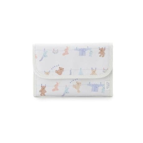 シャボンの香りが漂ってきそうな、春のピースフルなお洗濯タイム。洗濯紐に留まったルームウェアやぬいぐるみたちの絵柄を総柄プリントした、ウォッシングアニマル柄のママ雑貨シリーズです。小さめで使いやすいSサイズの母子手帳ケースは、中身がぱっと見えて整理しやすいジャバラ式の仕切りがポイント。カードスリットやファスナーポケットも付いており、病院の診察券やお金、母子手帳まで最低限必要なものをコンパクトに収納できます。バッグの中でもかさばりすぎない程良いサイズ感。表地のコットンは水や摩擦に強い加工を施し、裏地は抗菌防臭機能が付いた生地を使用しました。色はピンクとブルーの2色展開。同シリーズのママバッグと合わせてギフトにしたり、KIDS、BABYアイテムと合わせて持つのもおすすめです。