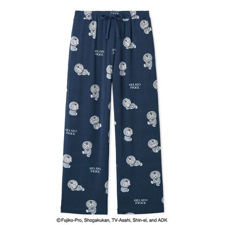 ハッピーなにこにこ顔やプンプン怒った顔、涙がこぼれそうなうるうる顔まで。ドラえもんとドラミの豊かな表情を描いたオリジナルアートが、喜怒哀楽いっぱいの毎日に寄り添う『ドラえもん』シリーズ第2弾。色んな表情のドラえもんを総柄プリントした、カジュアルにはきこなせるメンズサイズのロングパンツです。肌触り柔らかなカットソーを使用し、優しいワントーンの絵柄で合わせやすく仕上げました。両脇と右後ろにポケット付き。色を効かせたオリジナルピスネームもさりげないポイントです。色はメンズ限定カラーのネイビーをご用意。同シリーズのロングTシャツとコーディネートしたり、ファミリーでリンク・コーディネートもお楽しみいただけるアイテムです。