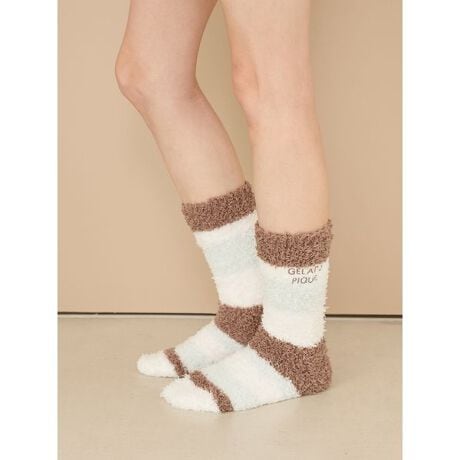 スウィートでカラフルなアイスのフレーバーをイメージした、定番‘ジェラート’素材のランダムボーダーシリーズです。ワンポイントでロゴ刺繍を添えたソックスは、春先にかけての冷え対策にもおすすめ。今季はストロベリーのような配色の柔らかなピンクと、爽やかなチョコミント味を思わせるミントの2色をご用意しました。同シリーズのウェアとコーディネートしたり、ギフトにもおすすめのアイテムです。