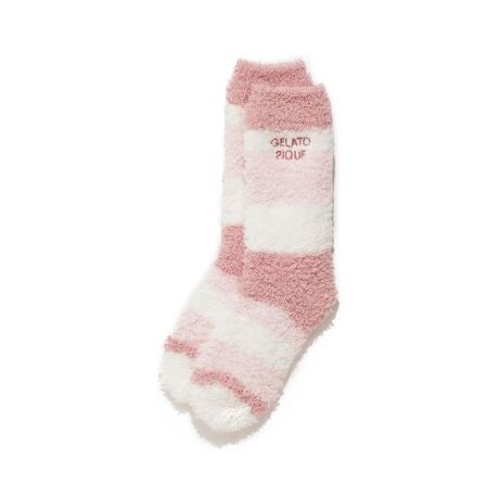 スウィートでカラフルなアイスのフレーバーをイメージした、定番‘ジェラート’素材のランダムボーダーシリーズです。ワンポイントでロゴ刺繍を添えたソックスは、春先にかけての冷え対策にもおすすめ。今季はストロベリーのような配色の柔らかなピンクと、爽やかなチョコミント味を思わせるミントの2色をご用意しました。同シリーズのウェアとコーディネートしたり、ギフトにもおすすめのアイテムです。