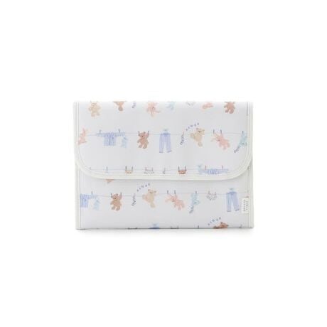 シャボンの香りが漂ってきそうな、春のピースフルなお洗濯タイム。洗濯紐に留まったルームウェアやぬいぐるみたちの絵柄を総柄プリントした、ウォッシングアニマル柄のママ雑貨シリーズです。たっぷり入る抜群の収納力を備えたLサイズの母子手帳ケースは、ファスナー付きのコイン入れやカード類のスリットなど、大小のポケットが18個ついています。複数人のお子様の母子手帳や病院の診察券をまとめておきたいときや、旅行や移動が多い方にも重宝するアイテム。表地のコットンは水や摩擦に強い加工を施し、裏地は抗菌防臭機能が付いた生地を使用しました。色はピンクとブルーの2色展開。同シリーズのママバッグと合わせてギフトにしたり、KIDS、BABYアイテムと合わせて持つのもおすすめです。