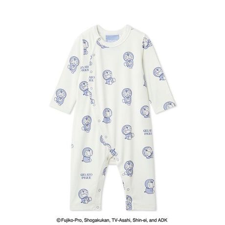 ハッピーなにこにこ顔やプンプン怒った顔、涙がこぼれそうなうるうる顔まで。ドラえもんとドラミの豊かな表情を描いたオリジナルアートが、喜怒哀楽いっぱいの毎日に寄り添う『ドラえもん』シリーズ第2弾。色々な表情のドラえもん&ドラミを総柄プリントした、赤ちゃんの成長がより楽しみになる総柄ロンパースです。肌触り柔らかなカットソーを使用し、優しいワントーンの絵柄で合わせやすく仕上げました。配色のベルナップや、色を効かせたオリジナルピスネームもさりげないポイントです。色はドラえもん柄のオフホワイトと、ドラミ柄のピンクの2色をご用意。同シリーズのカーディガンとコーディネートしたり、ファミリーでリンク・コーディネートもお楽しみいただけるアイテムです。