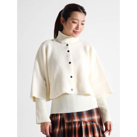 ケープライクなカーディガンとリブニットがセットになったアンサンブルアイテム。