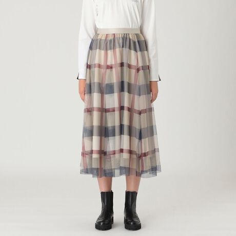 [型番:56S30692__]◆クレストブリッジチェックチュールのふんわりスカートチュールをたっぷり使ったエアリーなシルエットのスカートです。ウエストはゴム仕様で着心地快適です。シーズンレス、シーンレスに活躍するアイテムです。