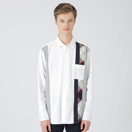 フロントをパッチワーク調に切り替えたデニム調のシャツ。一部にトーナルカラー(同系色)のクレストブリッジチェック柄を使用する事で、ブラックレーベルならではの一着に。トレンド感のあるリラックスシルエットを採用しています。