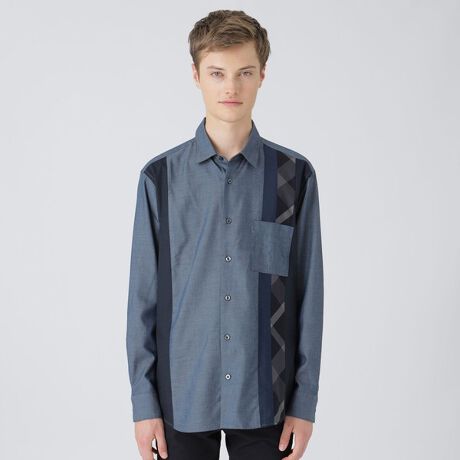 フロントをパッチワーク調に切り替えたデニム調のシャツ。一部にトーナルカラー(同系色)のクレストブリッジチェック柄を使用する事で、ブラックレーベルならではの一着に。トレンド感のあるリラックスシルエットを採用しています。