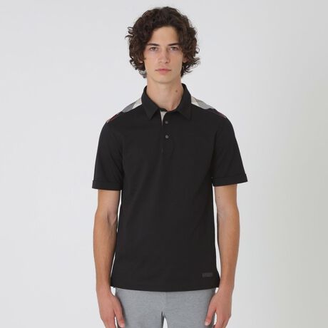 【肩部分にチェック柄をあしらった定番ポロシャツ】