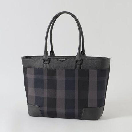 【落ち着いた配色のクレストブリッジチェックが映えるトートバッグ】