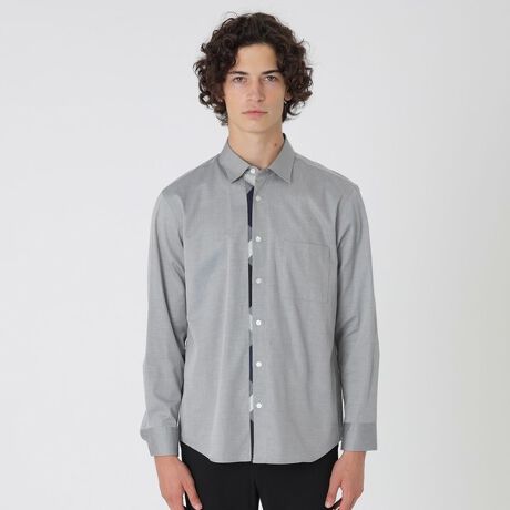 フロントの下前立てと台衿裏にクレストブリッジチェック柄をあしらったシャツ。釦を止めてもチェックが少し見えるブラックレーベルならではのデザインです。インナーとしてはもちろん、一枚着でもコーディネートの主役になる一着。衿型はシンプルなレギュラーカラーで、ややゆったりとしたトレンド感のあるリラックスフィットを採用しています。