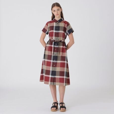 [型番:56J08606__]◆クレストブリッジチェックが華やかなシャツドレス繊細に織り上げたクレストブリッジチェック素材を使用したシャツドレスです。衿付きのデザインがきちんとした印象を与えてくれます。Aラインシルエットドレスとしての着用はもちろん、リボンでウエストをマークしたブルーレーベルらしいフィット&フレアシルエットでの着用もおすすめです。※展開店舗については、予告なく変更になる場合がございます。