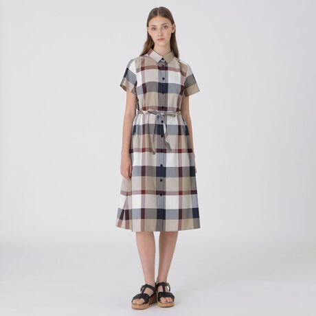 [型番:56J08606__]◆クレストブリッジチェックが華やかなシャツドレス繊細に織り上げたクレストブリッジチェック素材を使用したシャツドレスです。衿付きのデザインがきちんとした印象を与えてくれます。Aラインシルエットドレスとしての着用はもちろん、リボンでウエストをマークしたブルーレーベルらしいフィット&フレアシルエットでの着用もおすすめです。※展開店舗については、予告なく変更になる場合がございます。