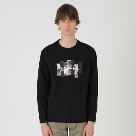 [型番:51P65675__]【フロントのロゴグラフィックが特徴的な長袖カットソー】フロントにロゴグラフィックをあしらった長袖カットソー。クレストブリッジチェックを幾何学調に表現したブラックレーベルならではの存在感あるグラフィックが特徴です。素材には綿のスムース生地を使用。程良い肉感で透けの少ない厚みが特徴。シルケット加工を施し、しなやかさと上品な微光沢をプラスしています。※展開店舗については、予告なく変更になる場合がございます。