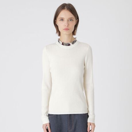 [型番:56N40698__]◆首元のチェックがポイントのニットプルオーバー首元のクレストブリッジチェックフリルがポイントのニットプルオーバーです。程よいフィット感で、1枚着はもちろん、ジレやドレスのインナーとしても活躍するアイテムです。※展開店舗については、予告なく変更になる場合がございます。