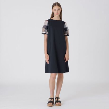[型番:56J05500__]◆クレストブリッジチェックのパフスリーブがポイントのドレスオリジナルチェック素材のパフスリーブが可愛いIラインドレスです。身頃部分はきれいめなポンチ素材を使用し、リラックス感がありながら上品な印象も与える万能ドレスです。※展開店舗については、予告なく変更になる場合がございます。