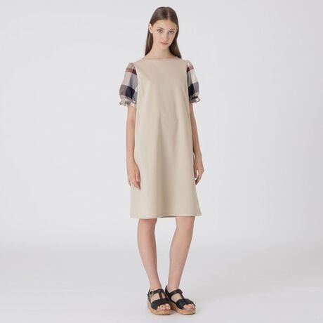[型番:56J05500__]◆クレストブリッジチェックのパフスリーブがポイントのドレスオリジナルチェック素材のパフスリーブが可愛いIラインドレスです。身頃部分はきれいめなポンチ素材を使用し、リラックス感がありながら上品な印象も与える万能ドレスです。※展開店舗については、予告なく変更になる場合がございます。