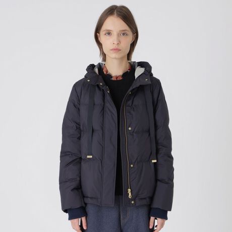 上品な微光沢があるしなやかな表地を使用したダウンコートです。