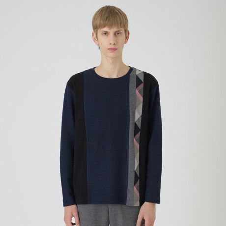 フロントを異なる素材で切り替えたパッチワークデザインのカットソー。アイコニックなクレストブリッジチェックを部分的に使用することで目を引くブラックレーベルならではのデザインです。インナーとしてはもちろん、一枚での着用時も十分に存在感あるデザインカットソーです。