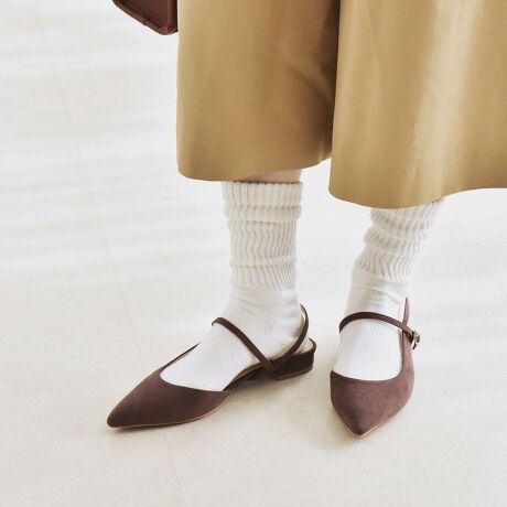 華奢なバックストラップが女性らしさを引き出し、足元をすっきりと見せてくれます。