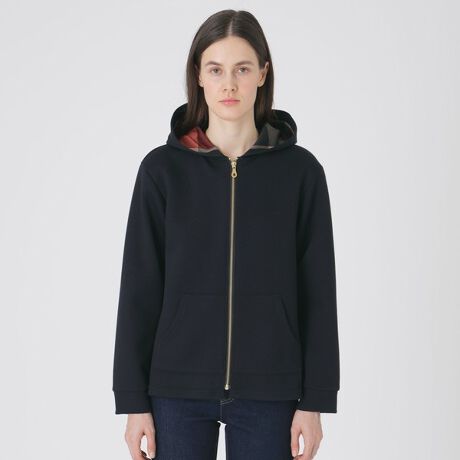 [型番:56P46630__]◆トップスとしても羽織りとしても使えるフーディーテントラインが可愛いジップアップフーディーです。上品見えするダンボール素材を使用し、裏面はオリジナルのクレストブリッジチェックプリントになっています。後ろ見頃はヒップにかけて丈を長めに設定しています。※展開店舗については、予告なく変更になる場合がございます。