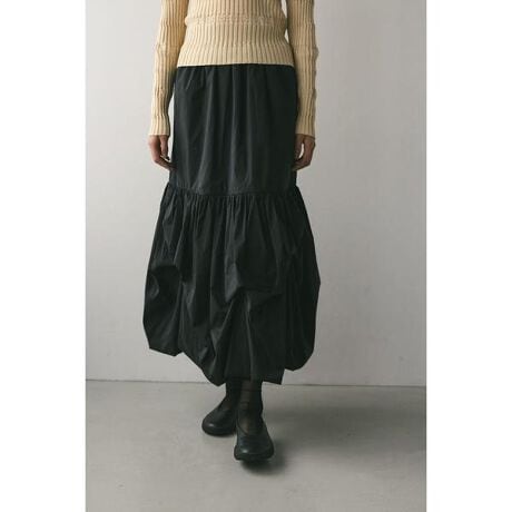 モデル身長178cm(Mサイズ着用)イレギュラーに入ったランダムタックが華やかな大人可愛いモードなバルーンスカート。バルーンのボリューム感を引き立たせる切り替えデザインがポイント。やわらかなハリ感のある素材を使用。立体フォルムを崩さず、カジュアルな装いにも品をもたらしてくれるニュアンスのある一着です。シンプルで洗練されたデザインは日常使いからちょっとしたお出かけまで、幅広いシーンで活躍します。ウエストゴム仕様。ストレッチなし、透け感なし。【お手入れ方法】マシンウォッシュ可