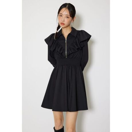 【フロントZIPとフリルデザインでクールさとフェミニンが融合されたシャツワンピース】■ポイントシャープな襟とフロントZIPデザインでクールな要素を表現しながら、Vの字で施したフリルデティールを入れて甘辛ミックスのミニ丈シャツワンピースを製作しました。ウエストはシャーリングゴムのため着脱がしやすく、着心地も◎です。■ディテールたっぷりな裾幅で動きのあるシルエットが華やかで存在感を与えてくれます。■スタイリングシーズンレスで着用が可能なのでその季節にあった足元で合わせてください。またスニーカー合わせなどカジュアルに崩すのもおすすめです。■生地透け感:なし裏 地:ウエスト下から裏地あり伸縮性:なし光沢感:なし厚 さ:なし■商品のお気に入り登録お気に入りアイテムの再入荷・在庫1点などの通知を受け取ることができます。[注意事項]※画像の商品はサンプルです。実際の商品と仕様、加工が若干異なる場合があります。※画像の商品は光の照射や角度、お使いのモニター環境により、実物と色味が異なる場合がございます。※着用、お取り扱いの際は、アテンションタグをご確認ください。